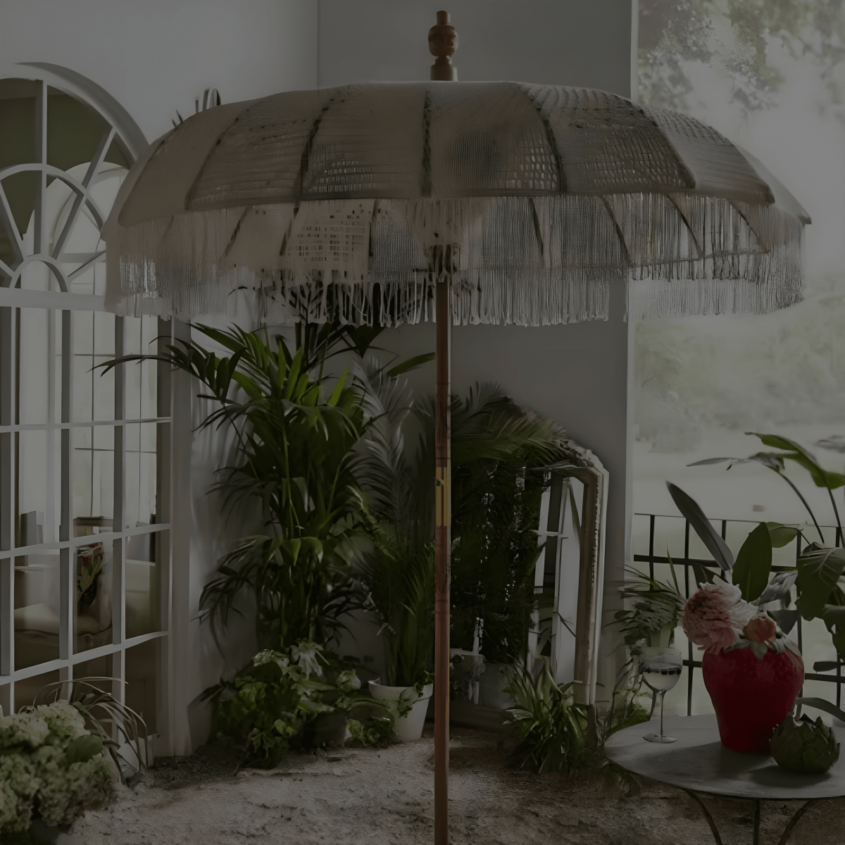 שמשיית בוהו מעוצבת שמוסיפה נגיעה טבעית ואלגנטית לכל חוף, גינה או אירוע.