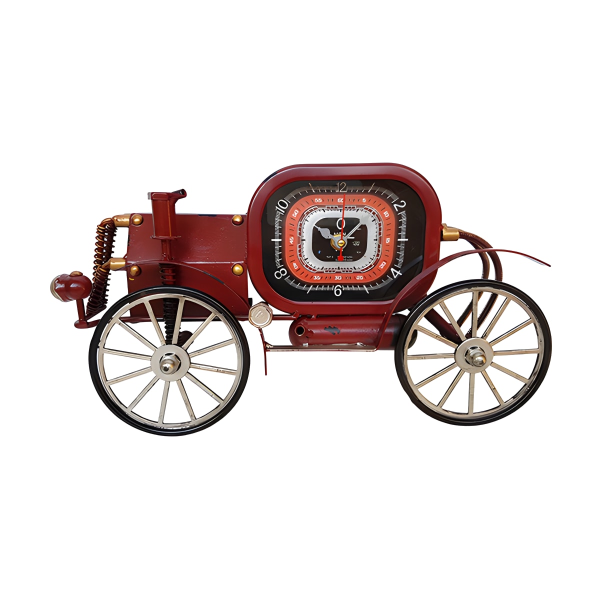 שעון קיר מעוצב ממתכת דגם מכונית קיטור בצבע אדום