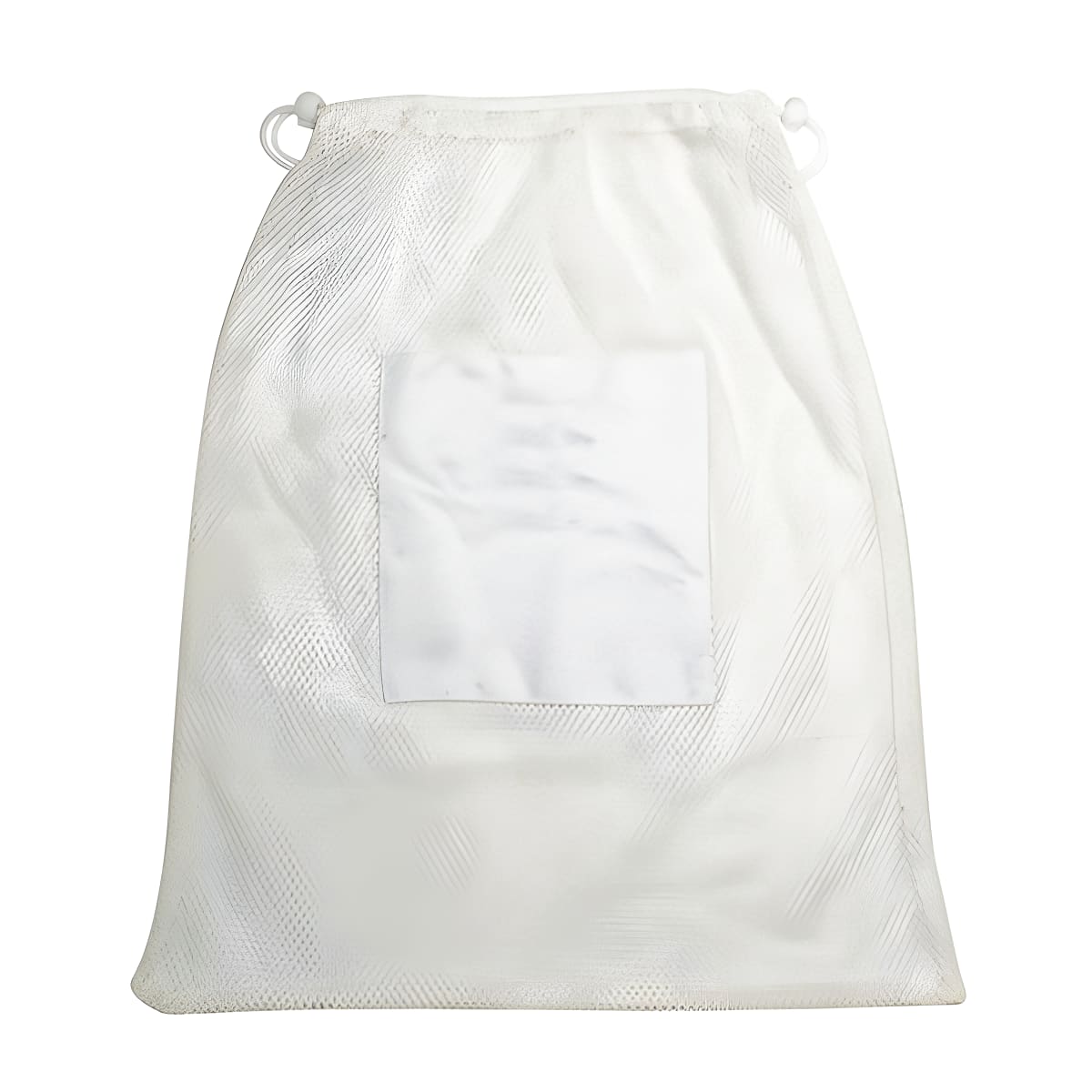 שק כביסה רשת לבן מיועד לכביסה במכונה בטמפרטורה עד 60 מעלות סגירת כיווץ שרוכים עם חרוזי קפיץ בעל פץ' תפור גדול עליו ניתן להדפיס מיתוג, או לכת