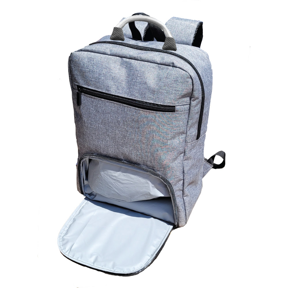 תיק גב ללפטופ עם תא צידנית בגודל 40X28X12 ס”מ בצבע אפור, מושלם לטיולים ולנשיאת מחשבים ניידים. התיק מצויד בתא צידנית שומר קור, מציע נוחות וני