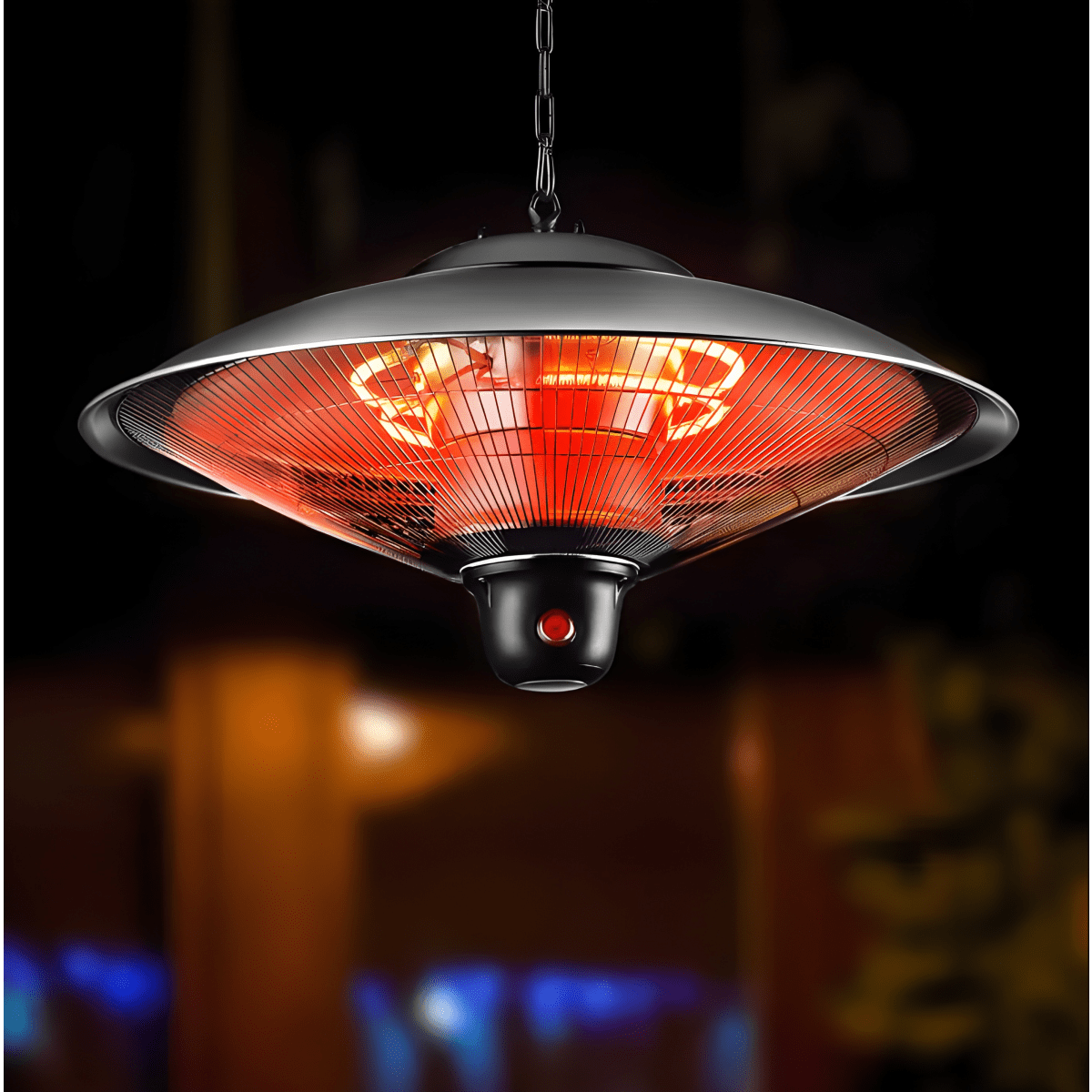 תנור תלוי חזק עמיד למים 2000W עם שלט רחוקמאפיינים עיקריים3 דרגות חום משתנותכולל שלט רחוק ושרשרת תלייהתקן אטימות IP34 נגד מיםעיצוב כסוף אלגנט