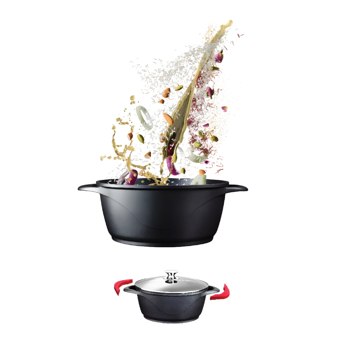 מכסים מזכוכית מחוסמת וידיות מתכת עמידות לחום גבוה, עם ידיות סיליקון נוחות.