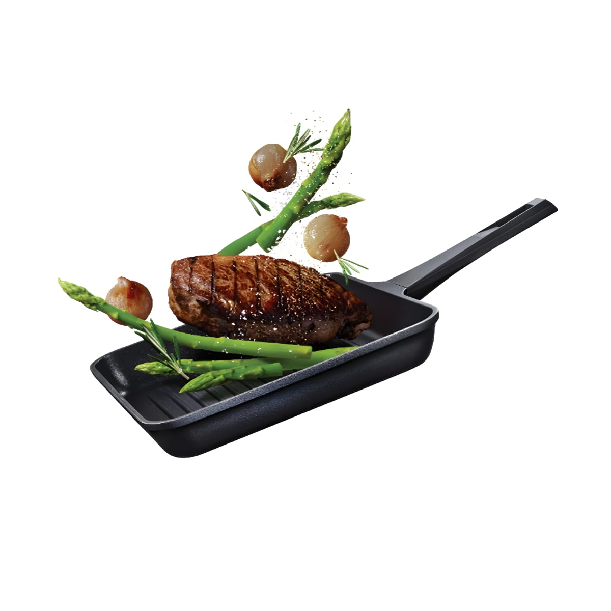 The 28X28 BLACK SHALE grill pan by MORPHY RICHARDS is crafted from high-quality cast aluminum and produced with advanced technology.Features
