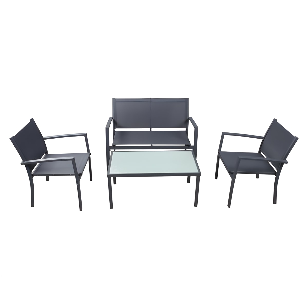 תיהנו מזמן איכות בגינה עם סט ישיבה מתכת איכותי הכולל 4 חלקים בדגם רודוס של המותג CAMPTOWN. הסט כולל ספה רחבה, שני כיסאות ושולחן מרווח.