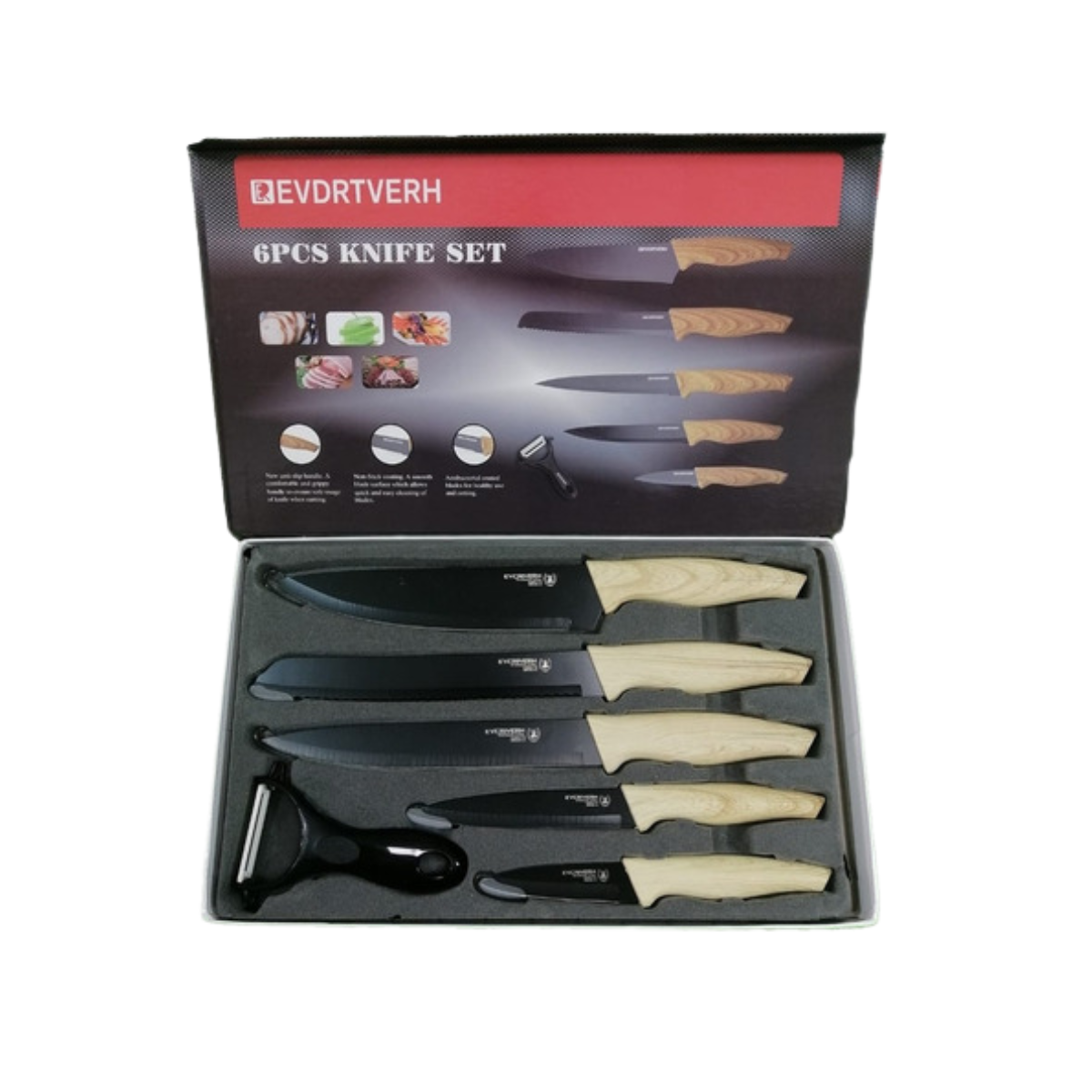סט סכיני שף 6 חלקים עם ידיות עץ
