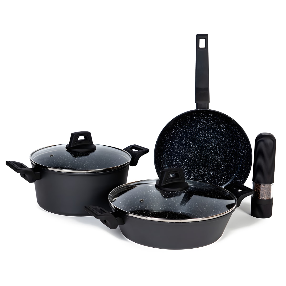 גלו את הסט סירים המהודר: עמיד, איכותי ומתאים לכל מטבח. הסט כולל:סיר 24 ס"מ באיכות ללא פשרות עם מכסהסוטז 28 ס"מ פונקציונאלי ועם מכסהמחבת 24 ס"מ מושלמת לטיגוןמטחנת תבלינים להכנה נוחה.