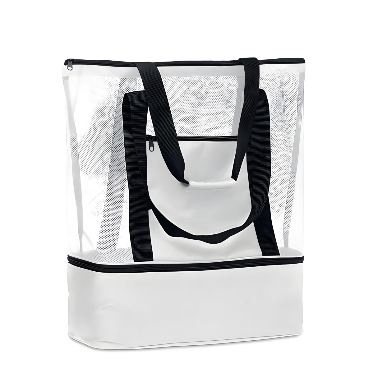 Enhance your shopping and beach experience with our durable 600D RPET shopping bag. Features a front zipper pocket and long handles for easy carrying, including a cooler compartment at the bottom to keep your drinks and snacks chilled. Perfect for daily shopping or a refreshing beach day.