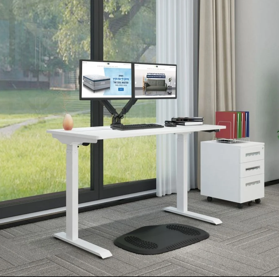 שולחן עבודה מתכוונן בגובה עם משטח כפול