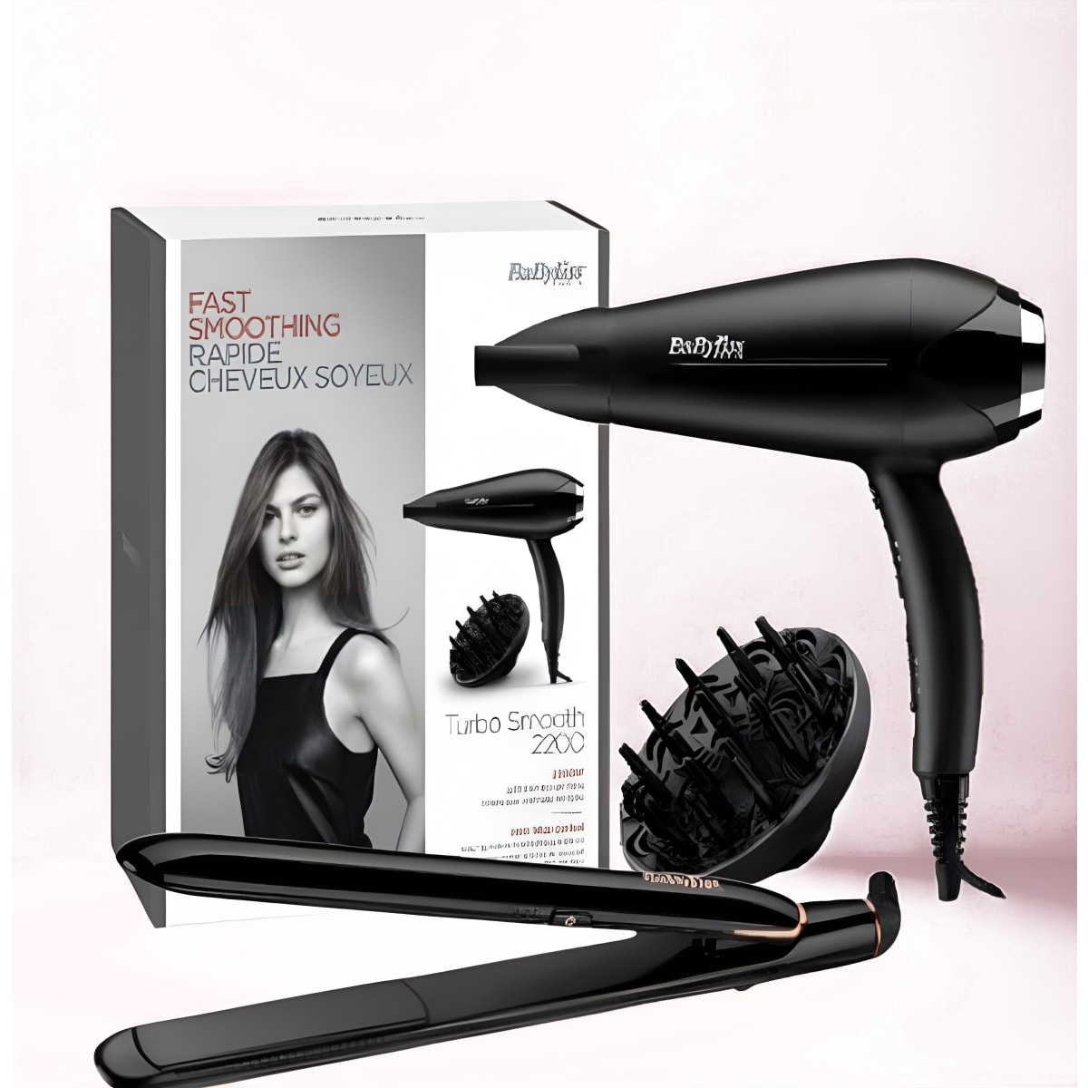 Rediscover perfect hair with BABYLISS's ultimate set. Includes a D572 Hair Dryer with diffuser for a natural look and a ST-250 Ceramic 19mm Flat Iron for sleekness. Invest in your beauty and achieve glowing hair like you've always dreamed of. Perfect for a luxurious gift and a premium experience every time.
