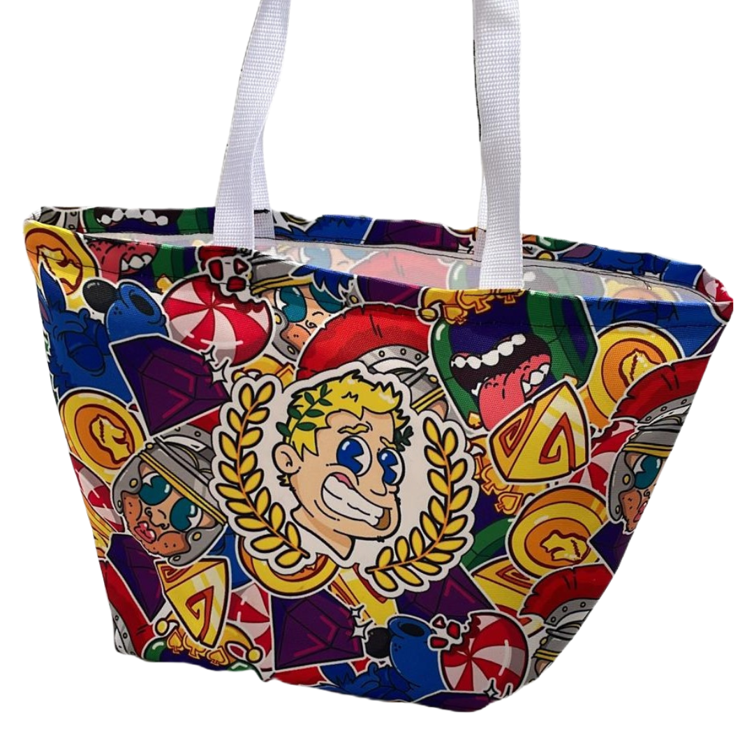 גלו את תיק הצד המושלם לים מבד קנווס עבה במיוחד עם הדפסה צבעונית מרהיבה. התיק רחב וגדול, בגודל 55x35 ס"מ, ומגיע עם ידיות בד ניילון שחור או לב