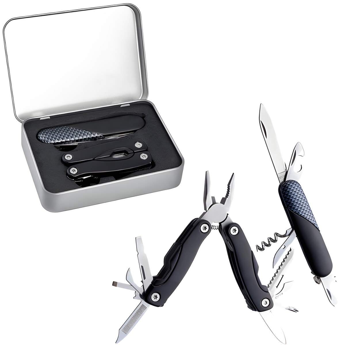 Black Multi-Tool and Pliers Set in Aluminum Case