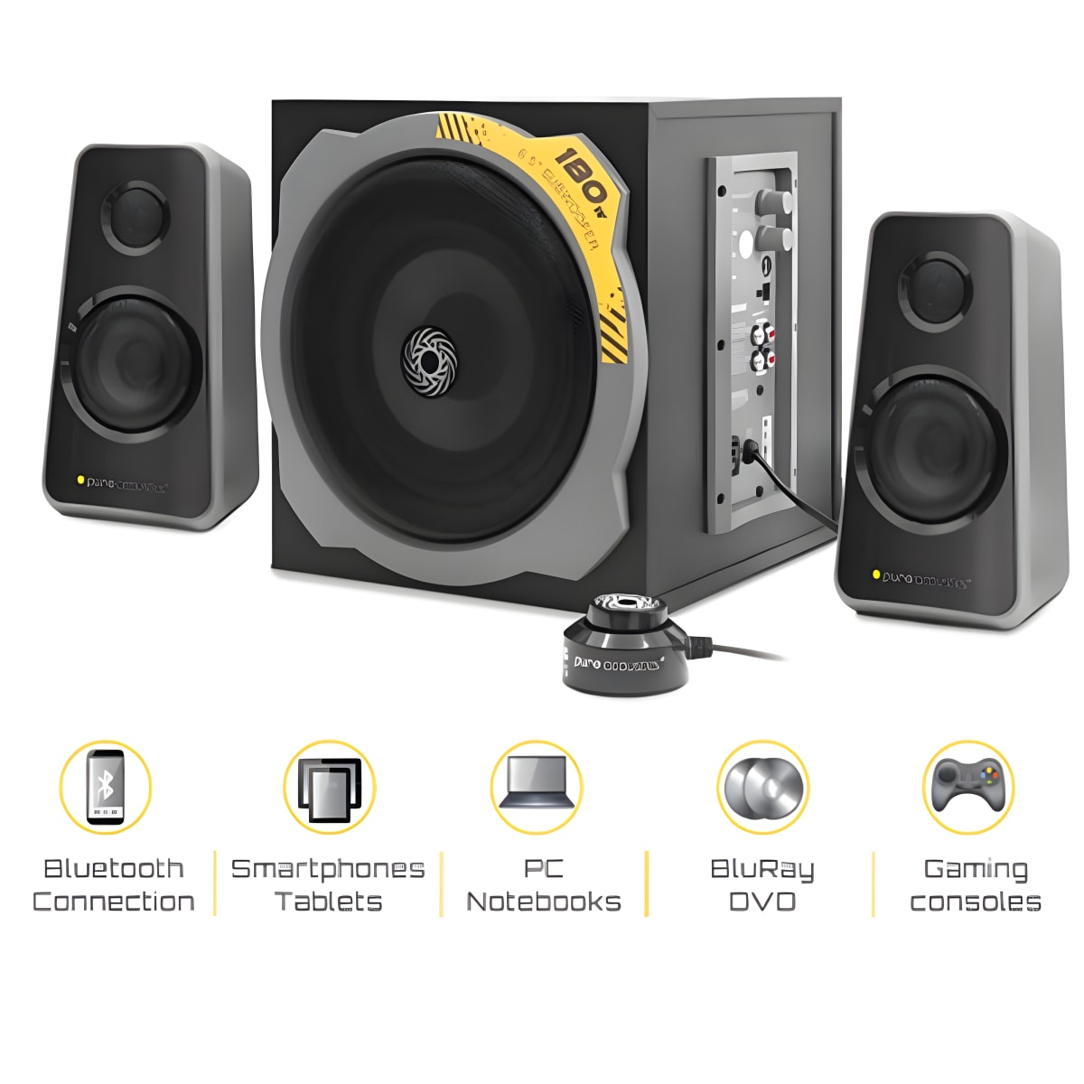 מערכת הרמקולים המושלמת לגיימרים, סמארטפונים וטאבלטים, כוללת קישוריות Bluetooth להזרמת מוזיקה אלחוטית. נהנים מאיכות סאונד Hi-Fi במחשב, קונסולות משחק, סלון, חדר שינה, סטודיו או משרד. ארבע אפשרויות חיבור: אופטי, RCA, רדיו FM, ו-Bluetooth אלחוטי. חיבור אופטי מתאים ל-PSP, XBOX ו-NINTENDO, ומספק חוויית שמע מושלמת לגיימר. יחידת שליטה מולטימדיה חיצונית עם שליטה על עוצמת השמע וחיבור נגיש לאוזניות. זוג רמקולים 2-Way עם יחידת מיד-וופר וטוויטר לטוב סאונד מדוייק. סאבוופר אקטיבי בקוטר 6.5 אינץ' עם מגבר 180 וואט לבאס עשיר ודינמי. חיבור ישיר למכשירי סמארטפון, טאבלטים ונגנים דרך RCA. המערכת מותאמת לכל סוגי המוזיקה, משחקים וצפייה בסרטים.