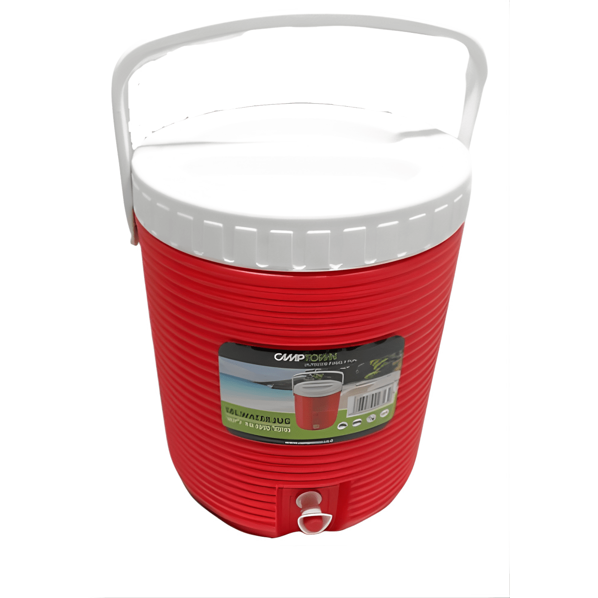 מיכל מים קשיח ומבודד חום וקור מבית CAMPTOWN, מתאים לטיולים ומחנאות. ידית אחיזה נוחה לנשיאה ובעל ברז למזיגה נוחה. נפח של 13 ליטר, מידות: קוטר