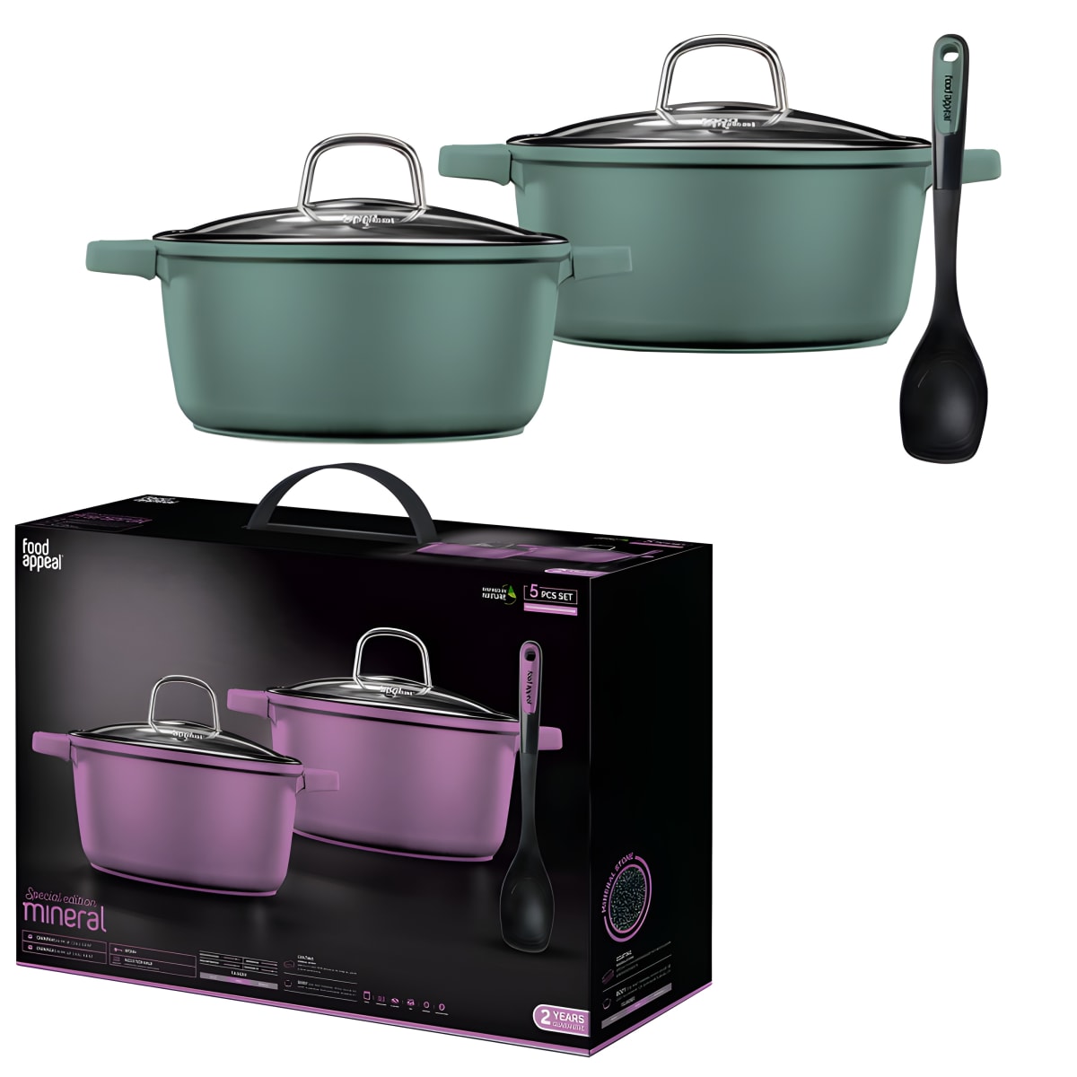 סט סירים צבעוני 5 חלקים מסדרת מינרל Brown Mineral של FOODAPPEAL