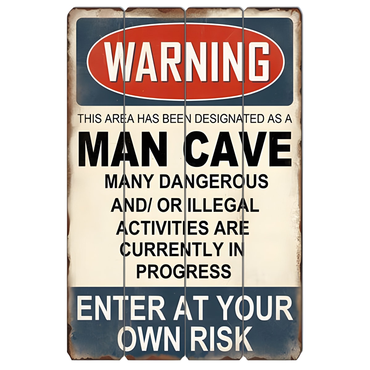 Add a personal touch to your man cave with this beautifully crafted wooden sign. Measuring 40x60 cm, this quality wooden sign is perfect for creating a unique atmosphere in your relaxation space. Ideal for game rooms, home gyms, or any chill-out corner. This man cave sign will help you create an environment that's perfect for you and your friends!