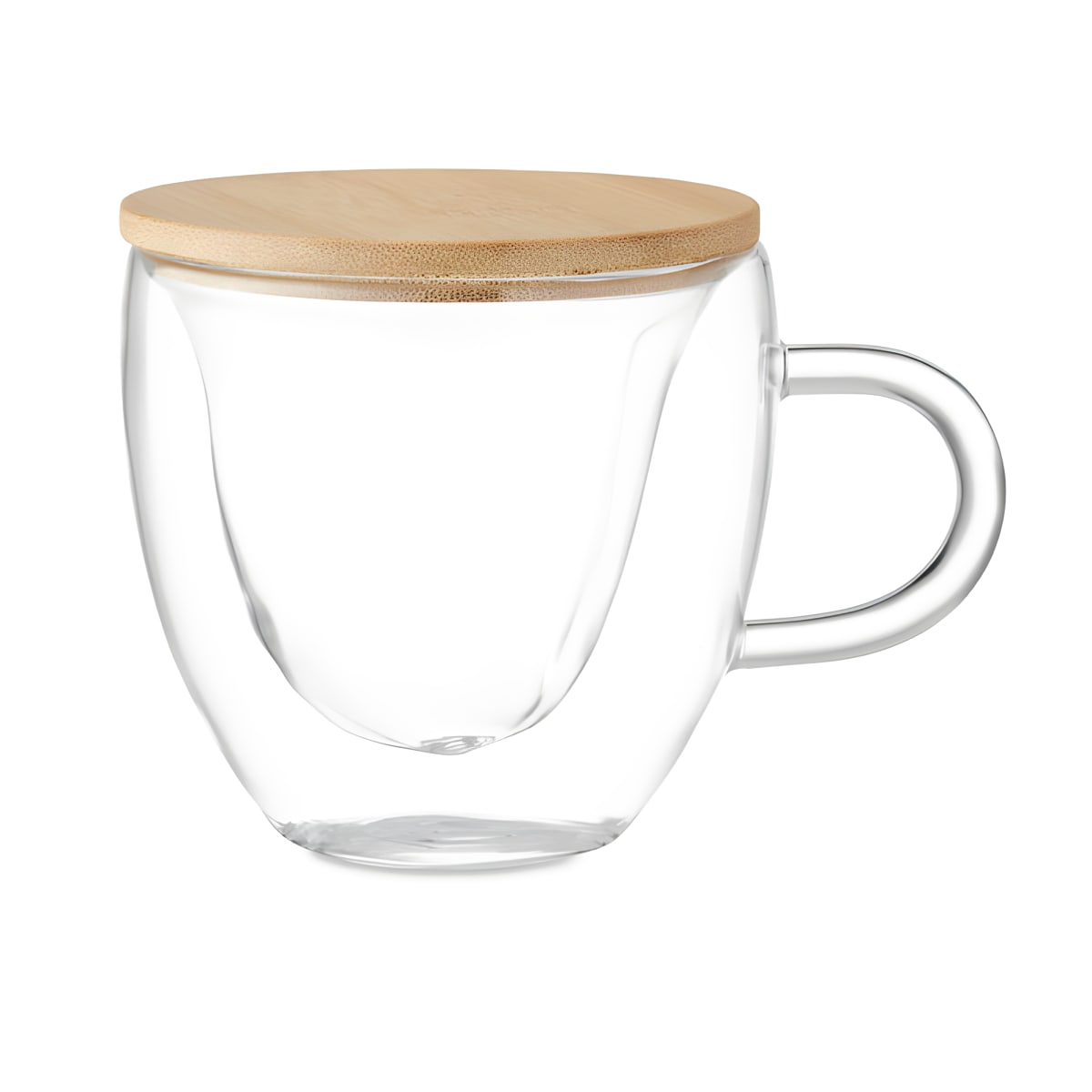 כוס תה זכוכית כפולה עם מכסה עץ