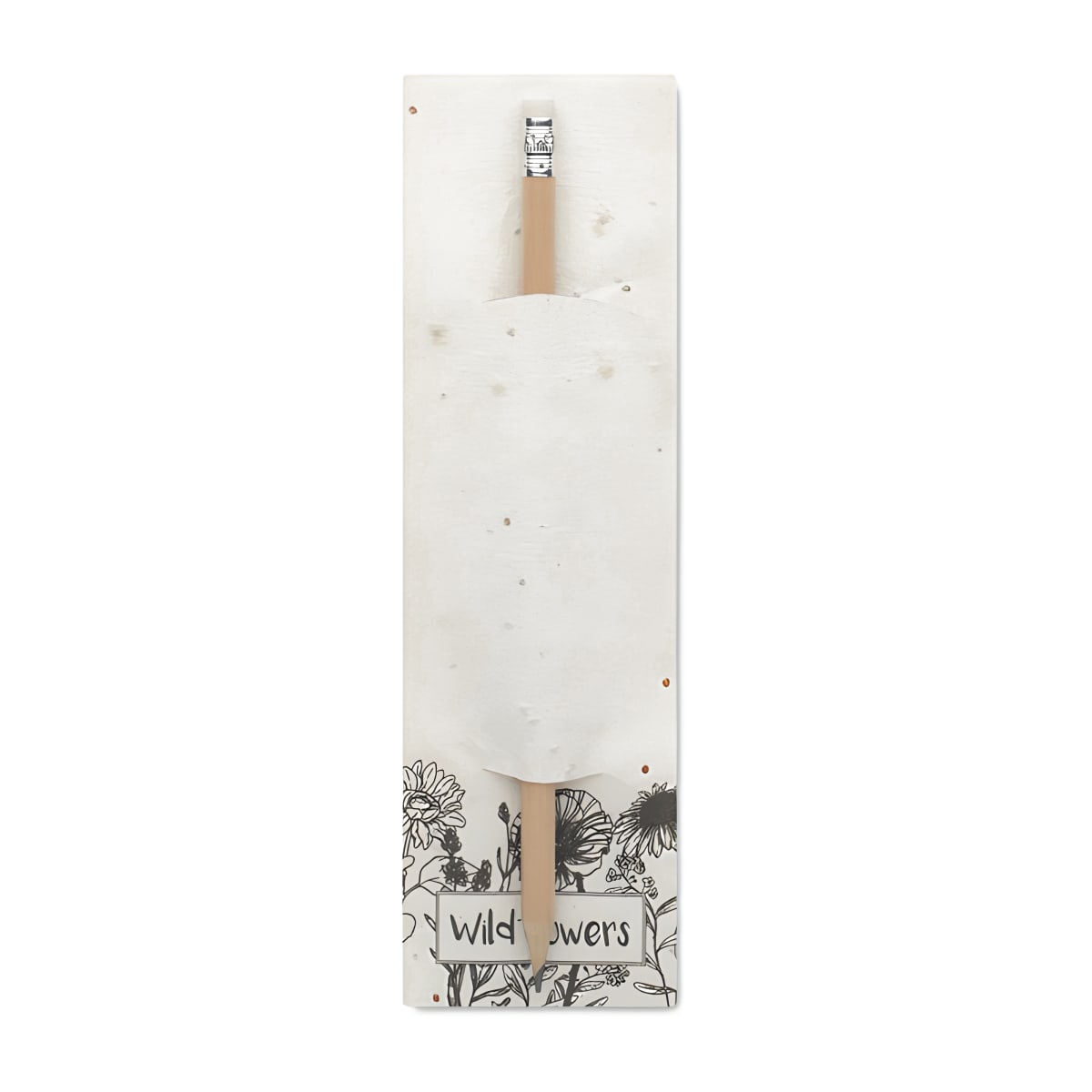 Discover the perfect eco-friendly natural wood pencil with an eraser, elegantly presented in a unique seed paper pouch designed to bloom wildflowers. Ideal for creative writing and a green environment. This natural wood pencil not only offers a smooth and comfortable writing experience but also allows you to contribute to the environment by planting the seed paper after use. Every purchase helps nature thrive.