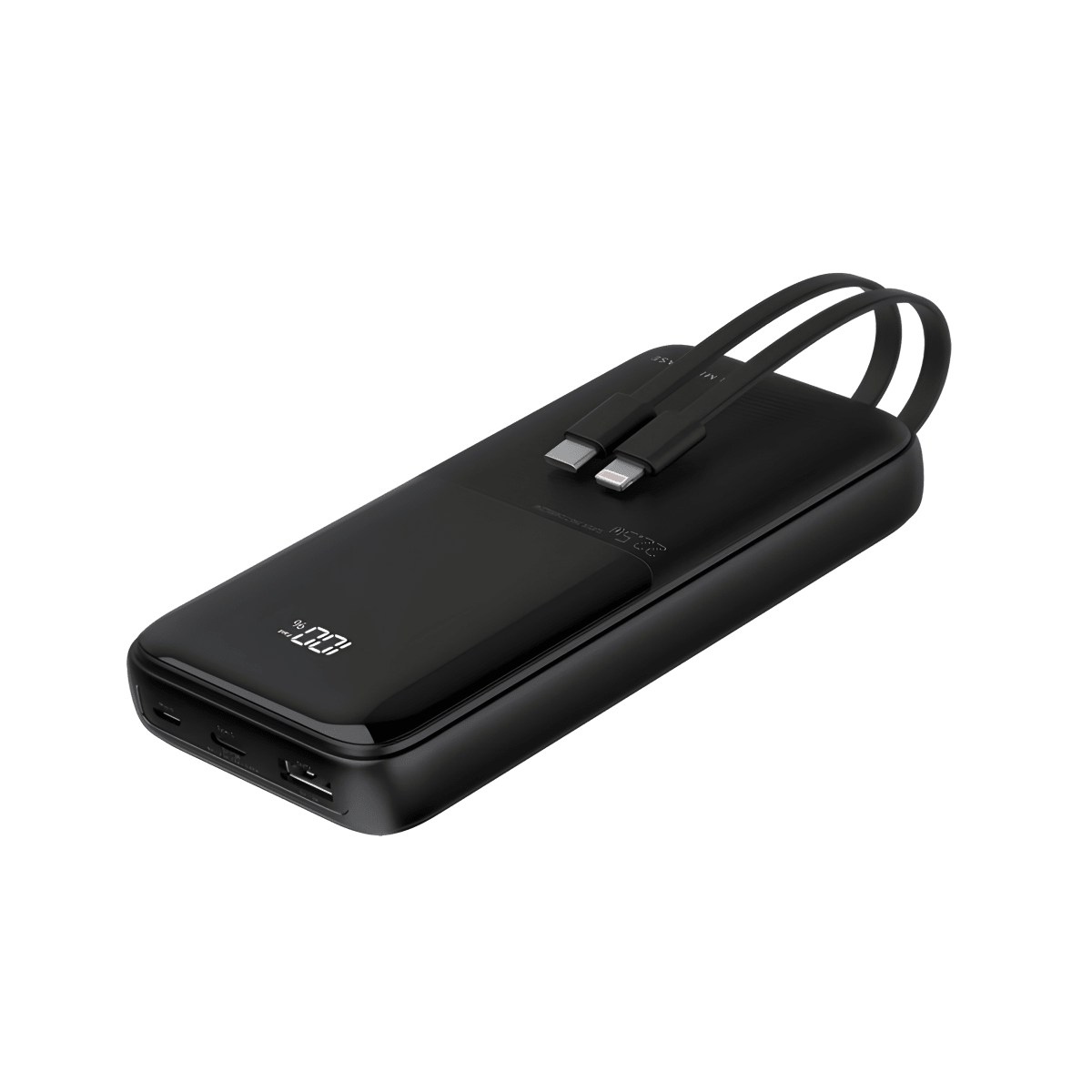 סוללת גיבוי יעילה 20000mAh עם כבלים מובנים וצג דיגיטלי