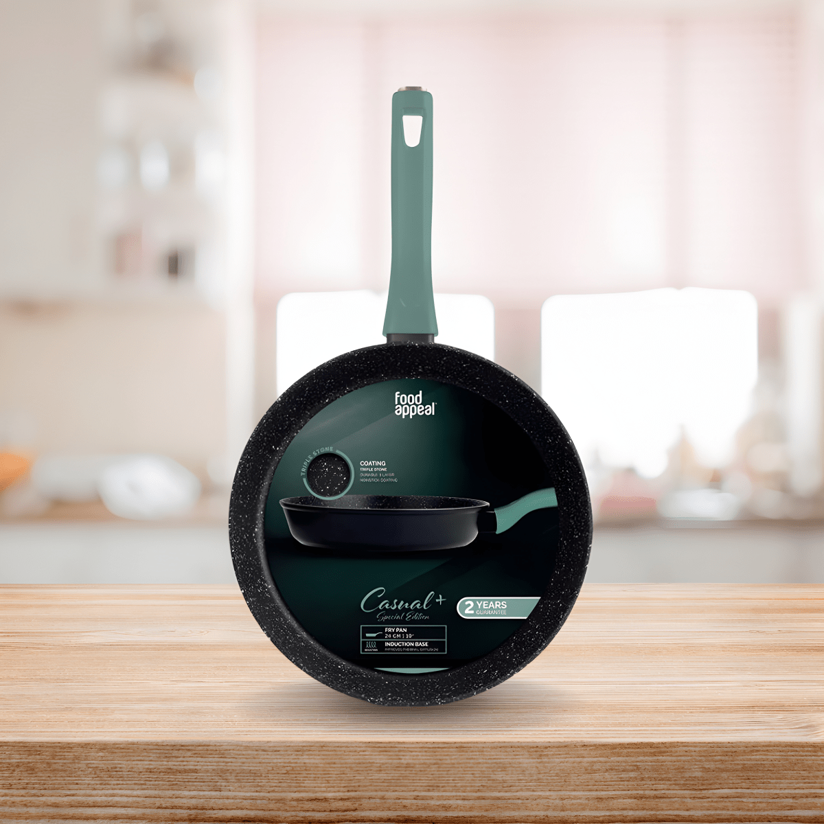 מחבת אלגנטית 24 ס"מ עם ידית ירוקה, מדגם CASUAL PLUS מבית FOOD APPEALהשתמשו במחבת זו לבישול איכותי ויומיומי. המחבת עמידה לאורך זמן ומספקת פת