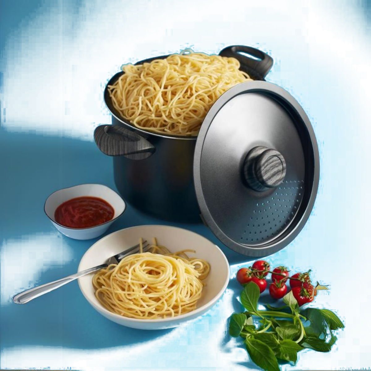 תכינו את הפסטה בקלות עם סיר הפסטה EVERYDAY PLUS. הסיר המקצועי הזה מאובזר במכסה מסננת מחורר המאפשר בישול פשוט ויעיל של פסטה ללא צורך במסננת נוספת. אידיאלי להכנת ארוחת צהריים וערב משפחתית.
