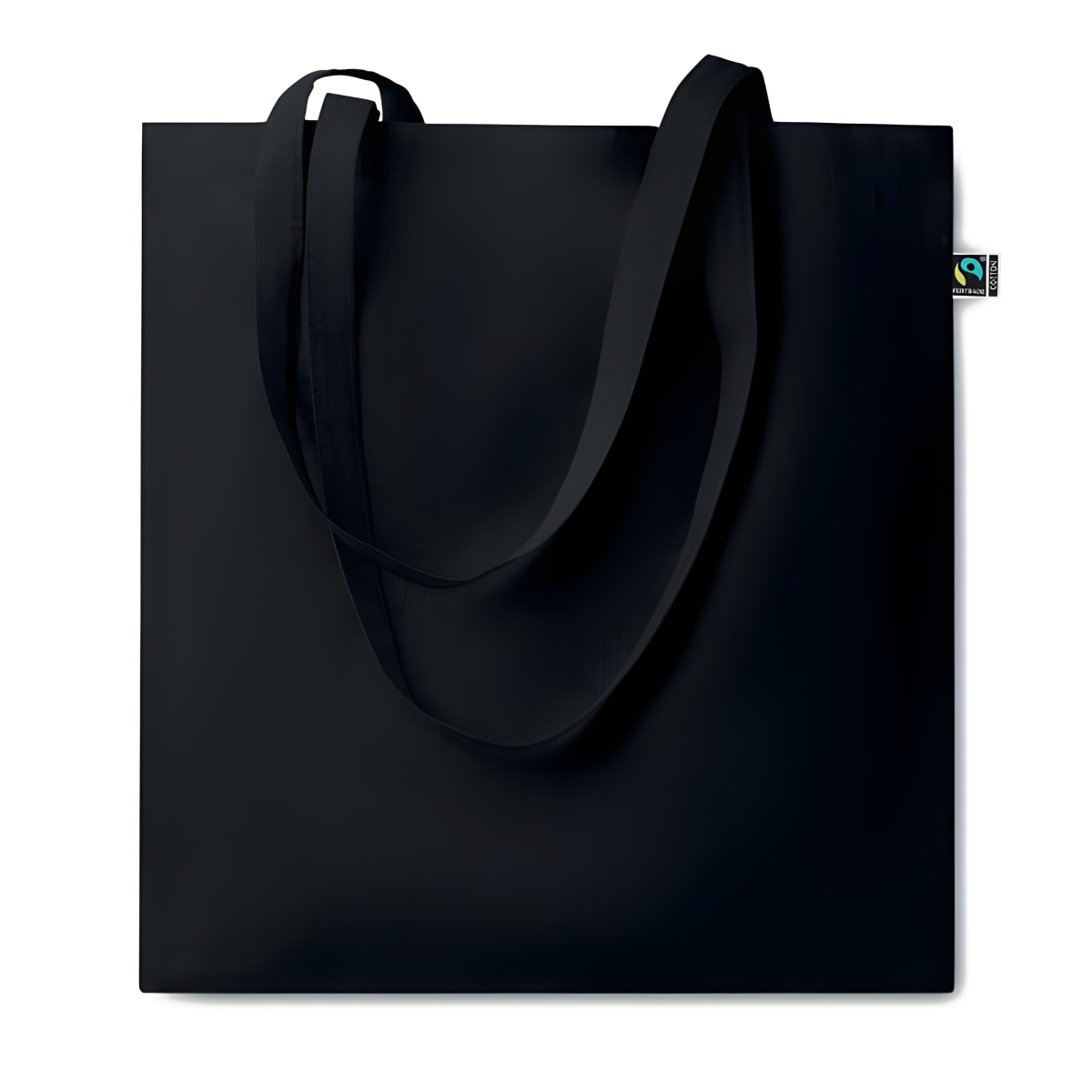 Discover the ideal shopping bag made from dyed Fairtrade cotton, featuring long handles for easy carrying. Lightweight at 140gr/m², it's per