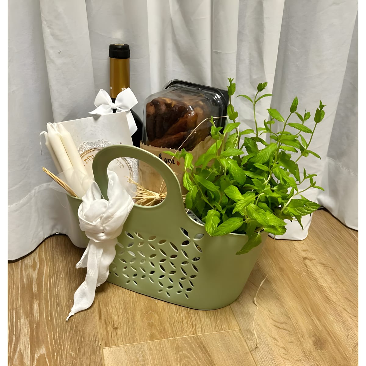 חוויית סוף שבוע בלתי נשכחת עם מארז השבת המשפחתי שלנו. במארז זה: סלסלת שוק מפנקת, שתיל תבלין לתה לפי בחירה (נענע, לואיזה, לימונית), עוגת שמרים קלאסית בתבנית אינגליש קייק, סדר הדלקת נרות שבת או תפילה לחיילים, זוג נרות שבת ויין אדום איכותי 750 מ״ל. המארז המפנק שלנו הופך כל שבת לחגיגה אמיתית!