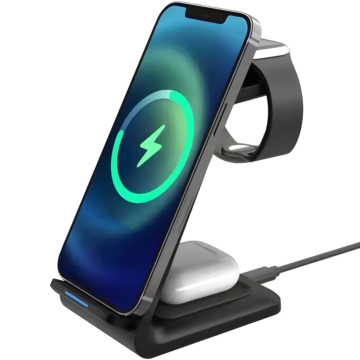 הכירו את תחנת הטעינה האלחוטית המהירה 3 ב-1 שלנו, שתיאום תכלכל בקלות את כל המכשירים הניידים שלכם. תומכת בטלפונים חכמים Android ו-iOS עד 15W,