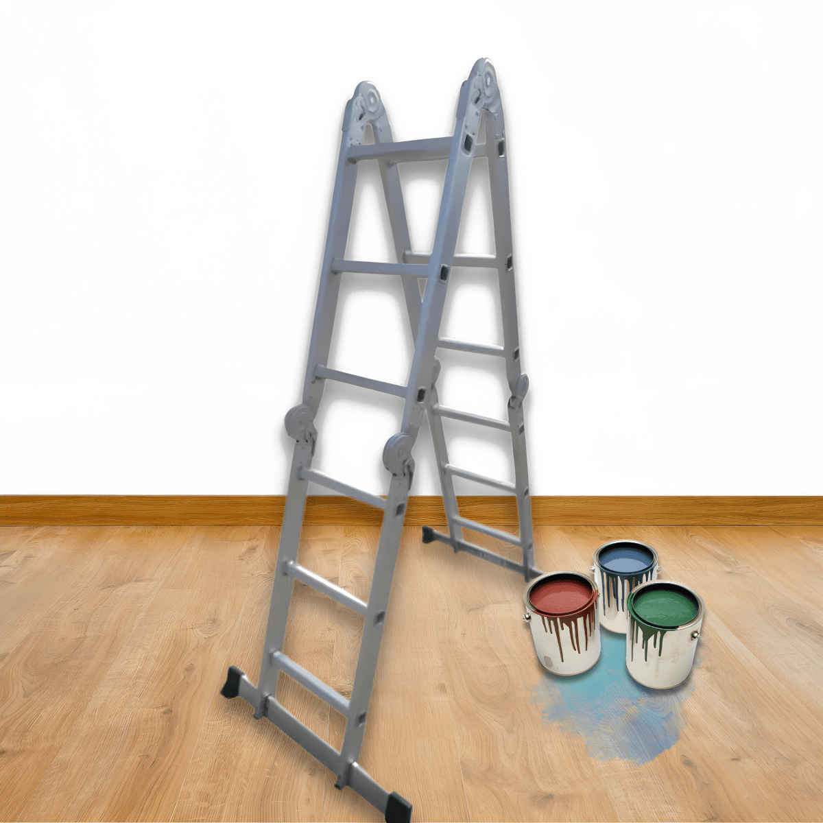 סולם אלומיניום מתקפל עם 4 מפרקים לעומס עד 150 ק"ג מבית GPT מאפייני המוצר: עשוי מאלומיניום איכותי לחוזק ועמידות רגליים רחבות למניעת החלקה וב