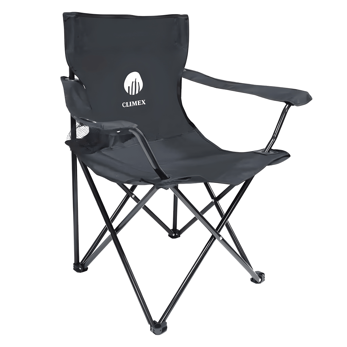 Premium foldable director's chair by CLIMAX, ideal for camping and outdoor adventures. Equip yourself with an easy-to-carry chair that folds effortlessly into a functional carry bag. With a sturdy steel frame, durable Oxford fabric, and integrated armrests, it's the perfect solution for any outdoor occasion. Measuring 82x50x80 cm, it weighs a light 1.7 kg and supports up to 100 kg. The most practical director's chair in a sleek black color.