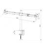 Supports monitors 13-27 inches, max load 9 kg, tilt angle of °15 ±, primary arm rotation of °90, and vertical axis rotation of °45. Available in black with illustrative images only.