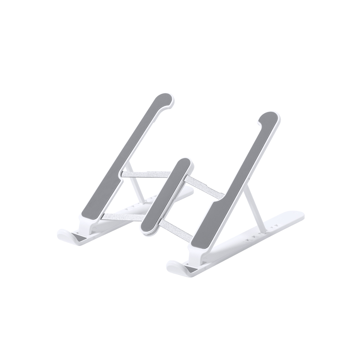 מעמד מתקפל למחשב נייד, עשוי מחומר ABS עמיד עם הגנות TPR נגד החלקה להתאמה מושלמת למכשיר. גובה מתכוונן, גודל קומפקטי, ומוצג בנרתיק זמש עם סגירה בחוט ובתוך קופסה מעוצבת אישית.