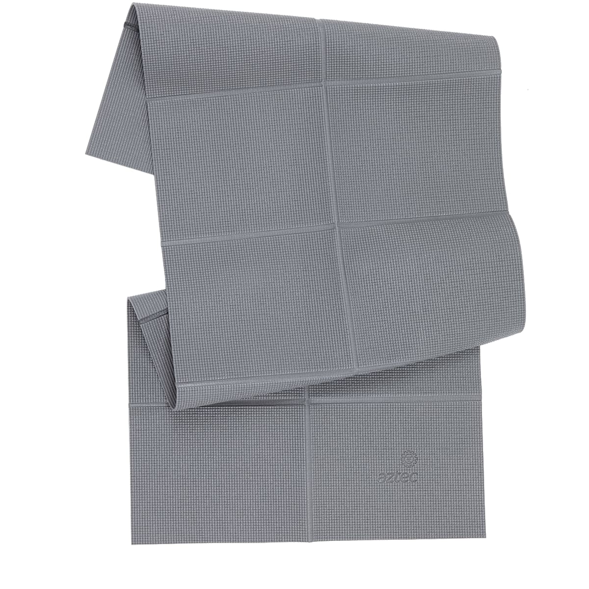 Discover the foldable yoga mat made of high-density PVC, offering a unique texture for anti-slip and superior grip. Lightweight and easy to carry, it folds into a compact square of 30×25 cm, perfect for beginners seeking comfort and practicality in their practice.