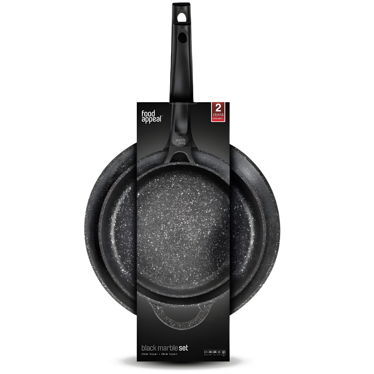 Discover the exceptional cookware set by FOOD APPEAL, with pans measuring 28 and 24 cm in a sleek black marble design. Perfect for both prof