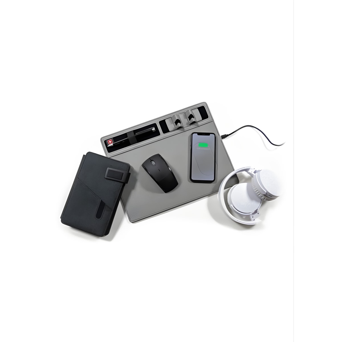 תיהנו ממשטח עכבר אפור יוקרתי עם מטען אלחוטי חזק מבית POLOSWISS. המשטח עשוי מעור סינטטי עם תפירה איכותית, כולל מטען אלחוטי פנימי לטעינת מכשיר