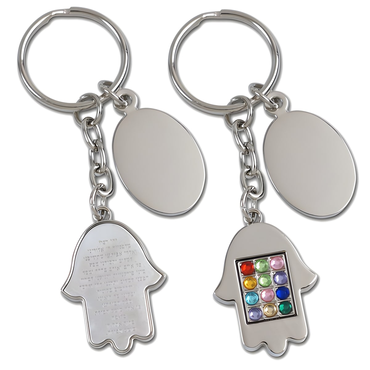גלו את מחזיק המפתחות המרהיב שלנו המשלב אבני חושן עם פלטה לחריטה אישית ותפילת הדרך בגב. מושלם כמתנה בעטיפת מתנה יוקרתית.
