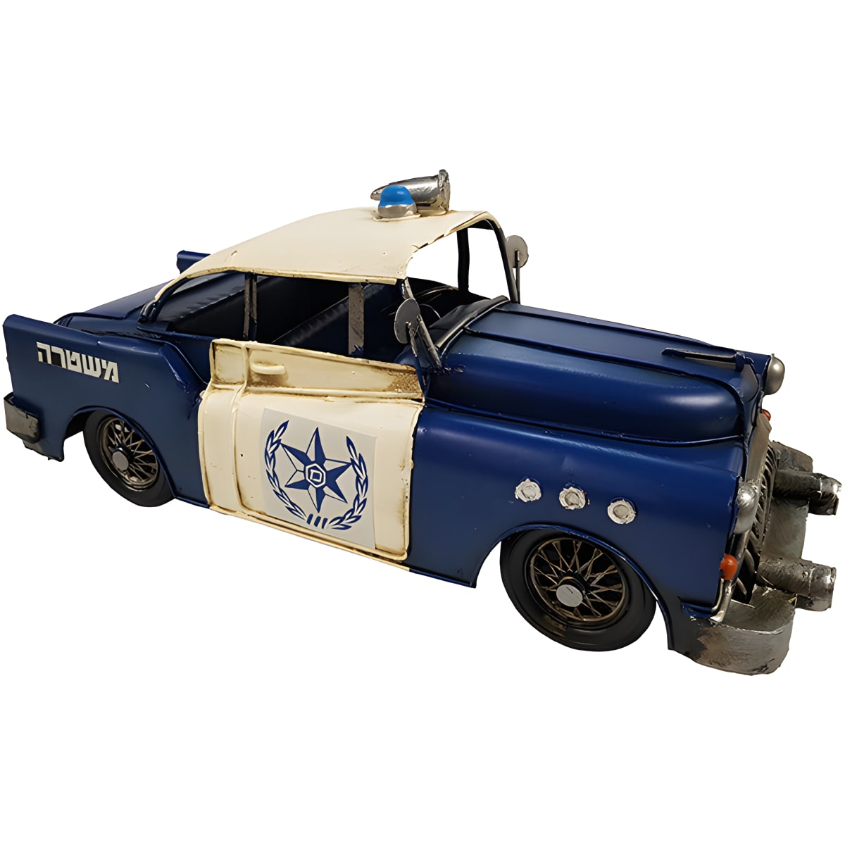 השלימו את האוסף שלכם עם ניידת משטרה רטרו וינטג' כחולה, יצירה בעבודת יד ממתכת. המוצר מציע עיצוב ייחודי המדגיש את האסתטיקה של שנות העבר. בגודל