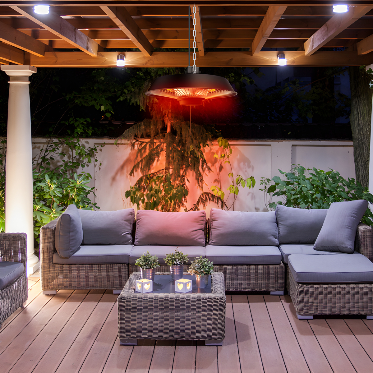 פטריית חימום חשמלית תלויה עם נורת הלוגן 1500Wחימום מהיר עם פיזור חום רחב, חיסכון באנרגיה, ומוגן מים IP44. התקנה ואחסנה קלה.מושלמת לשימוש בסל