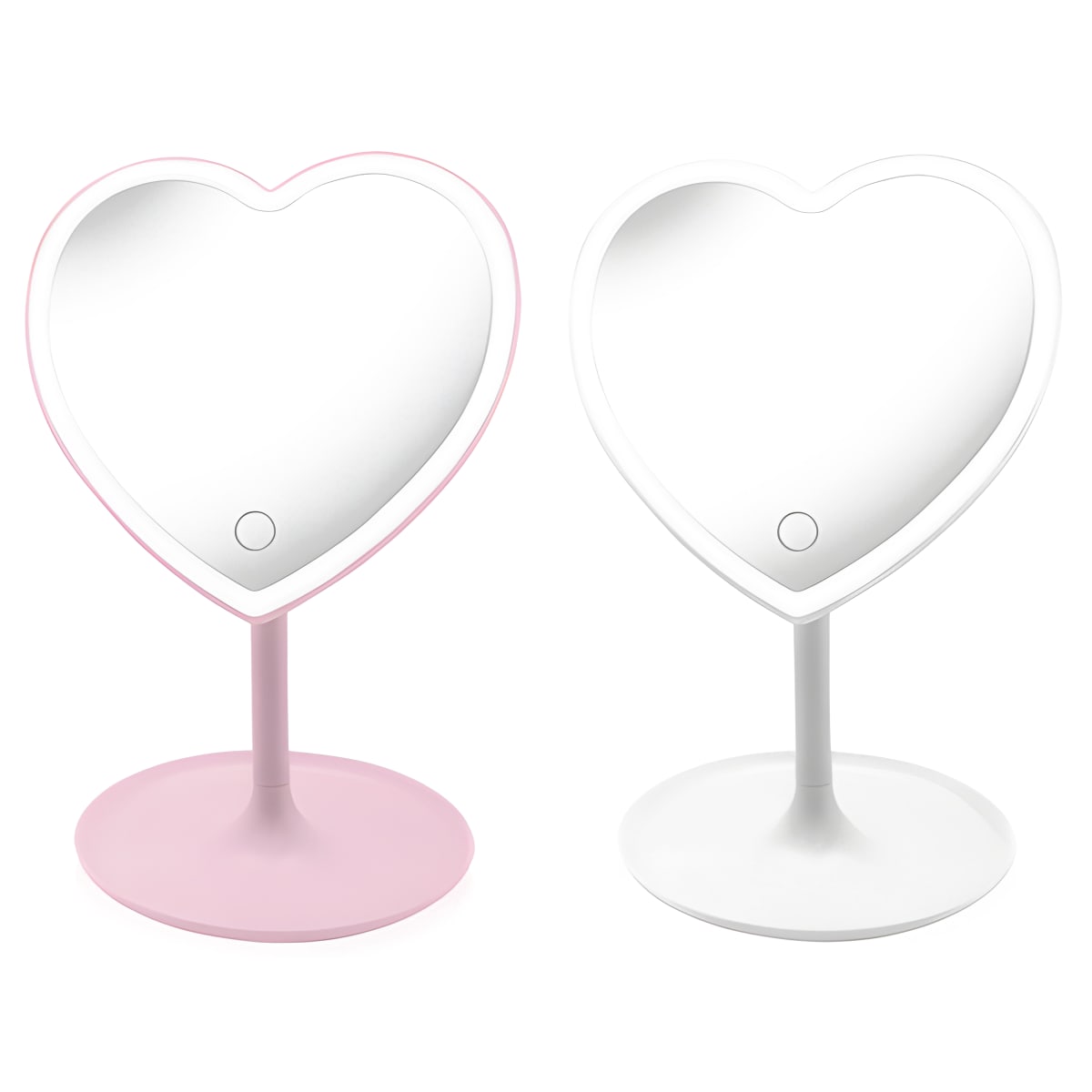 Transform your room with the stylish 'Blash' heart-shaped mirror featuring innovative LED lighting activated by a touch. The elegant base doubles as a storage space for jewelry and makeup accessories. Comes with batteries, measuring 25X16 cm including the stand. Ideal for any space.