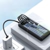 Experience the freedom of charging anywhere with our 10,000mAh solar power bank. Compatible with all devices featuring 4 fast charging ports (USB/Lightning/Type-C/Micro-USB). Includes a digital display and two LED lights for illumination. Compact size: 14.6X6.8X2.1 cm. The perfect charger for travel and adventures.