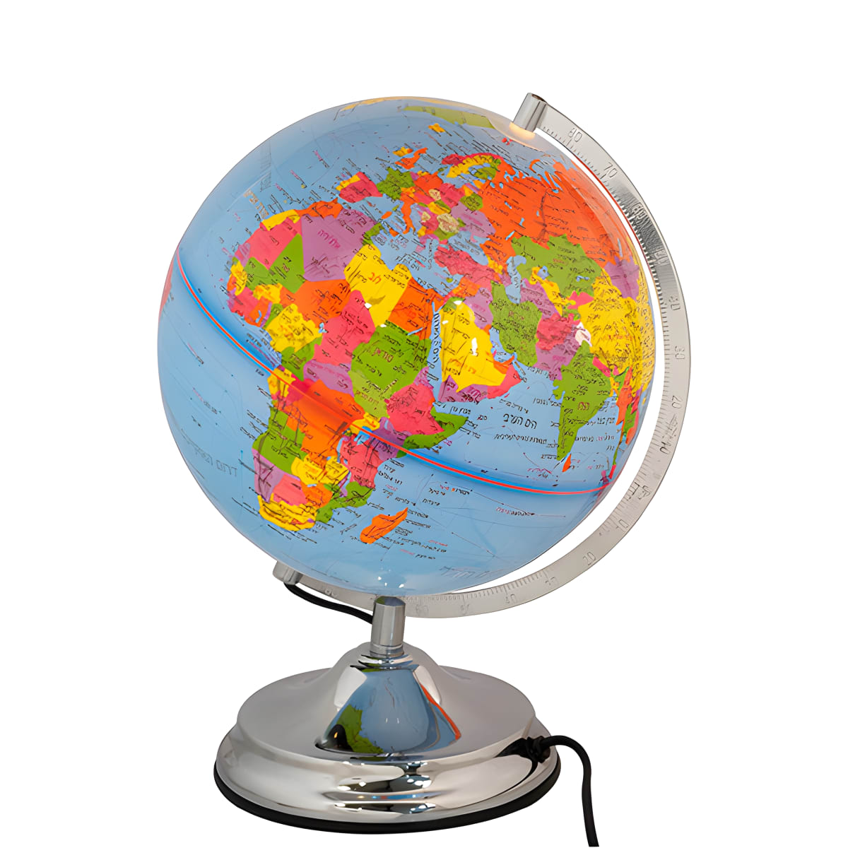 גלובוס דקורטיבי מאיר עם מפת העולם בעברית