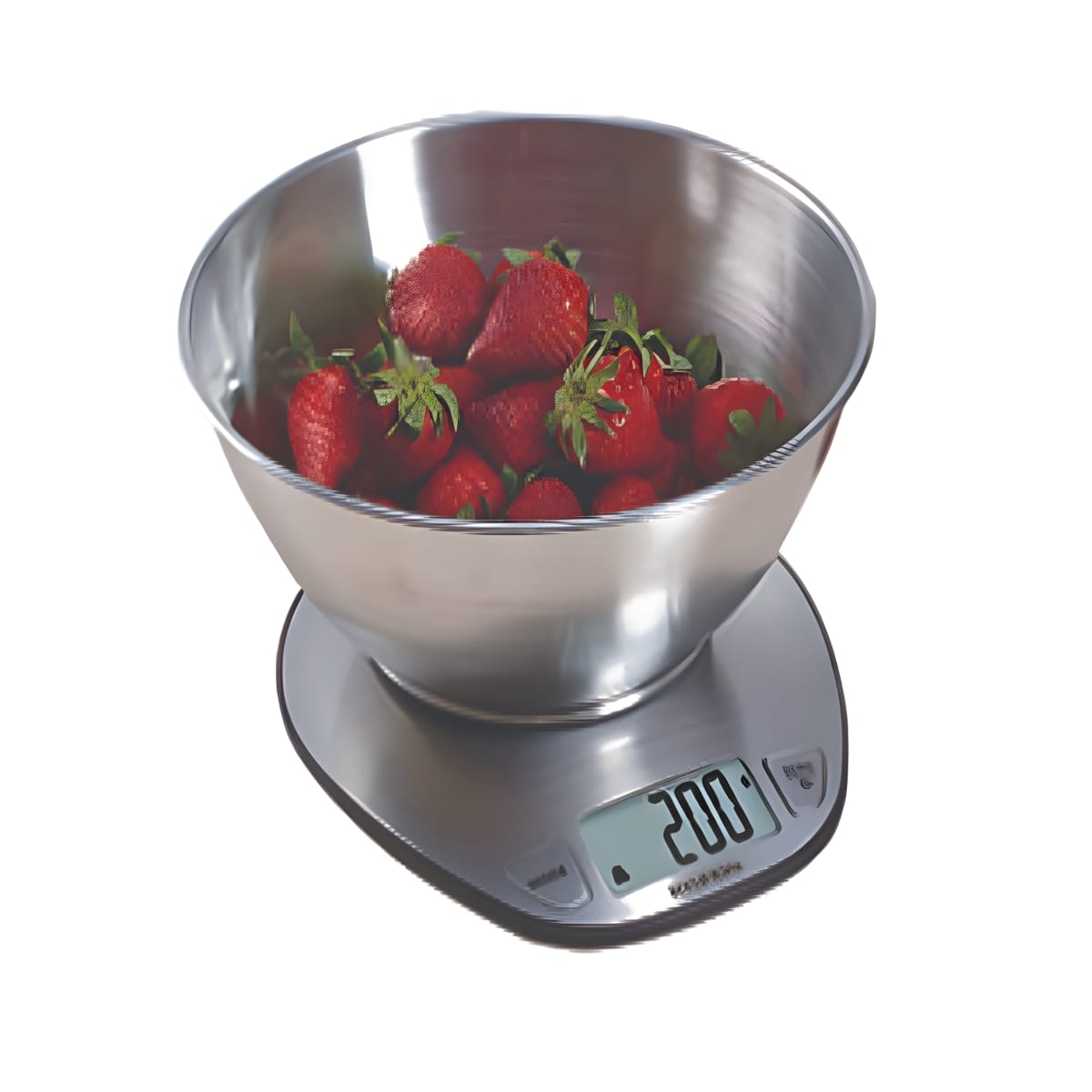 משקל מטבח דיגיטלי מושלם עם תצוגה ברורה ולחצנים קלים להפעלה. מדויק ואמין לשקילה עד 5000 גרם (9 ליברות), מתאים לכל צורך במטבח. משטח נירוסטה אי