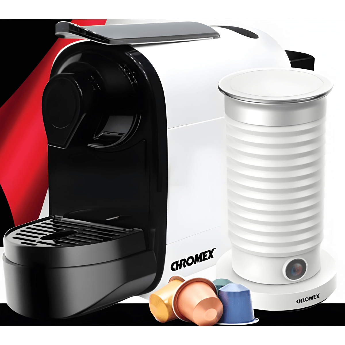 גלה את חווית הקפה המושלמת עם סט הקפה של CHROMEX!הסט כולל מכונת אספרסו קפסולות תואמת קפסולות נספרסו ומקציף חלב חשמלי להקצפה עשירה של חלב חם א