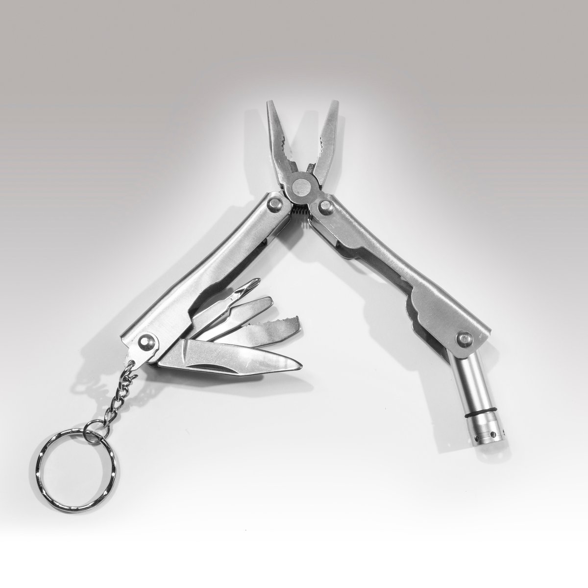 שדרגו את חיי היומיום שלכם עם מחזיק מפתחות רב תכליתי הכולל אולר מתכתי, פלייר, ופנס. מוצר זה מספק פתרון מושלם למשימות כמו פתיחת בקבוקים ועד לת