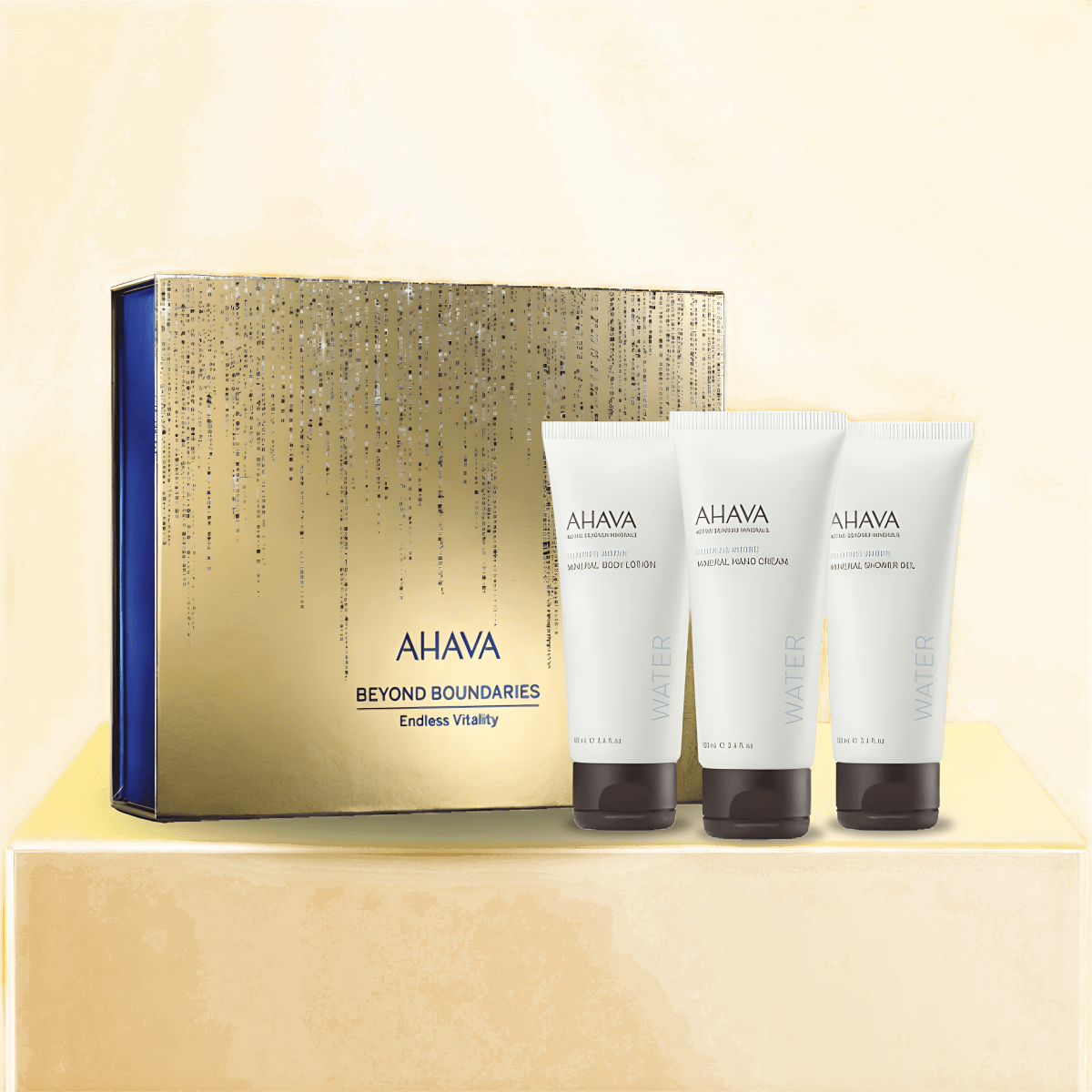 Discover the perfect mineral skincare set for women by AHAVA, featuring refreshing hand cream, luxurious shower gel, and rich serum for opti
