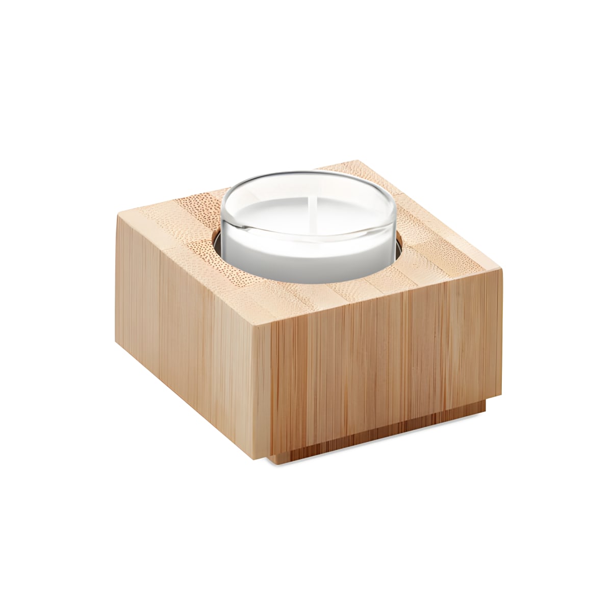 Enhance the warmth of your home with this Natural Bamboo Tealight Holder. Includes a tealight candle and is crafted from genuine bamboo. Due