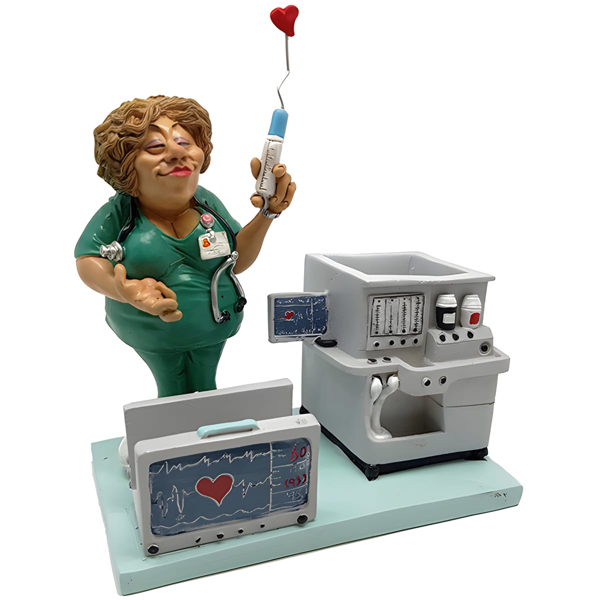 עצבו את המשרד שלכם עם מעמד שולחני בדמות אחות במדים ירוקים, הכולל כוס לעטים ומעמד לכרטיסי ביקור. פתרון מושלם לאחזור קל ומהיר של כלי כתיבה וכר