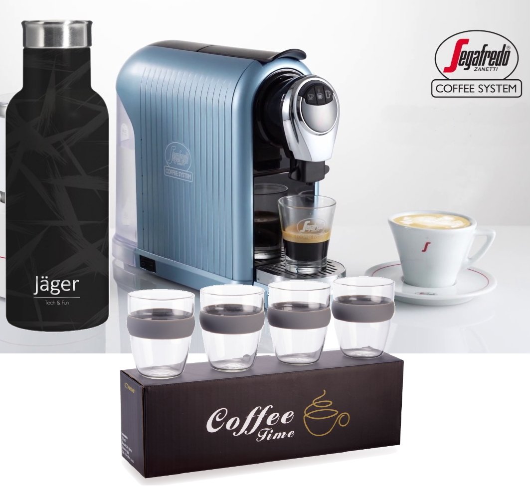 מארז קפה SEGAFREDO מושלם עם מכונת אספרסו, כוסות ובקבוק תרמי