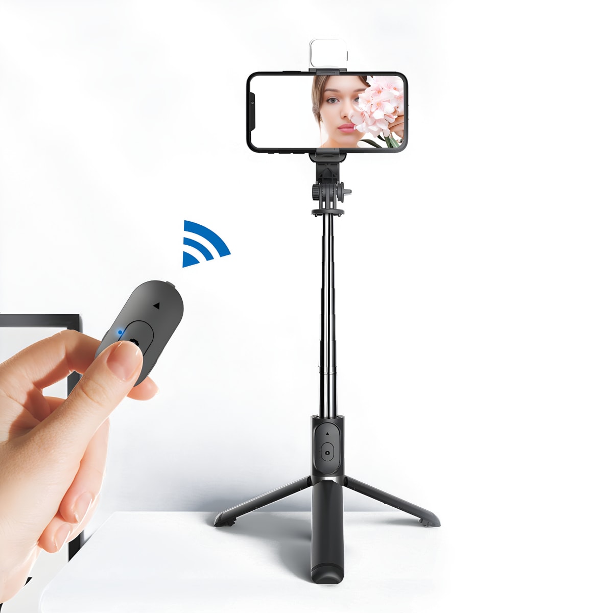 The ultimate phone holder with tripod and LED lighting for capturing perfect selfies. Crafted from high-quality metal, with a pole length of