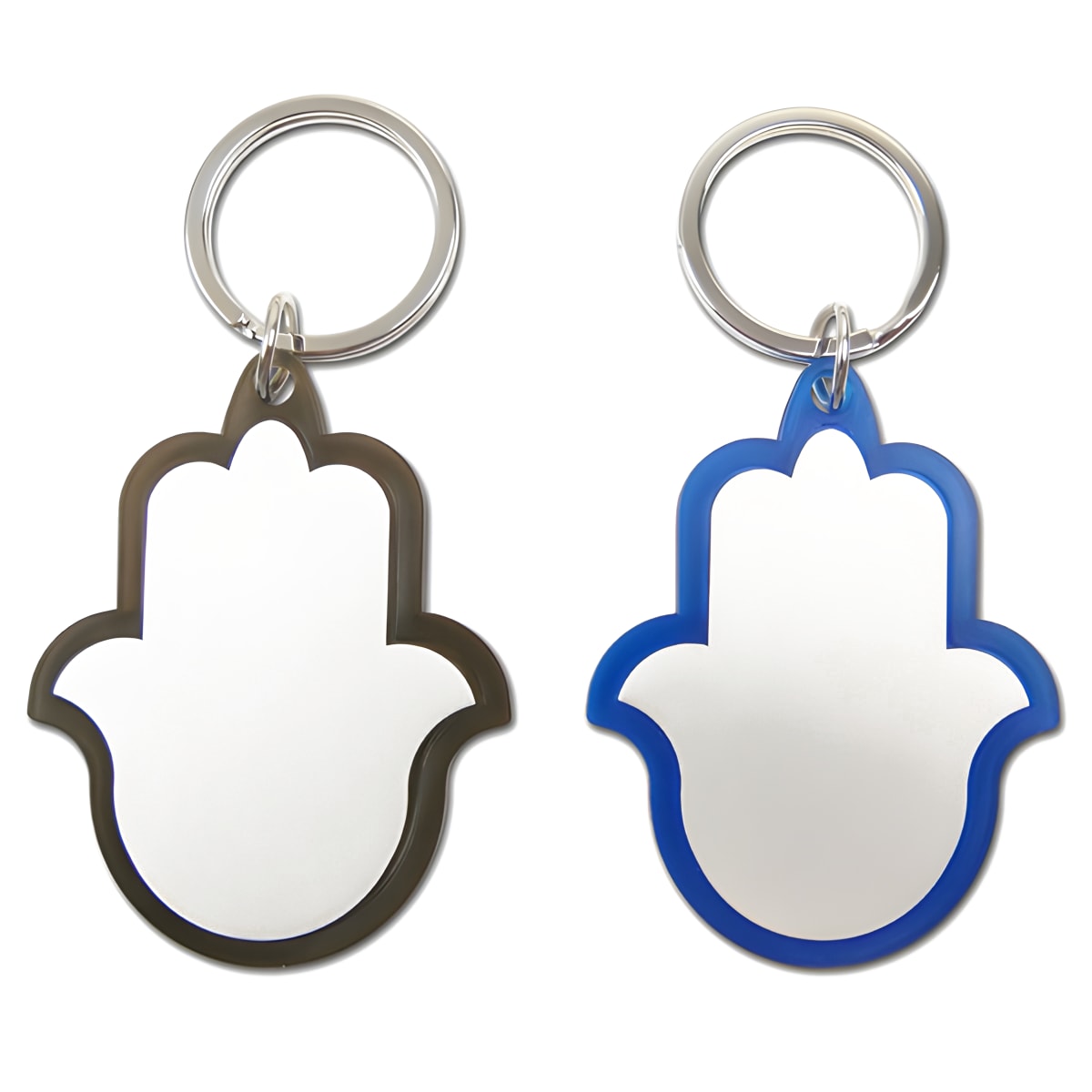 מחזיק מפתחות חמסה מפלסטיק עם לוחית אלומיניום
