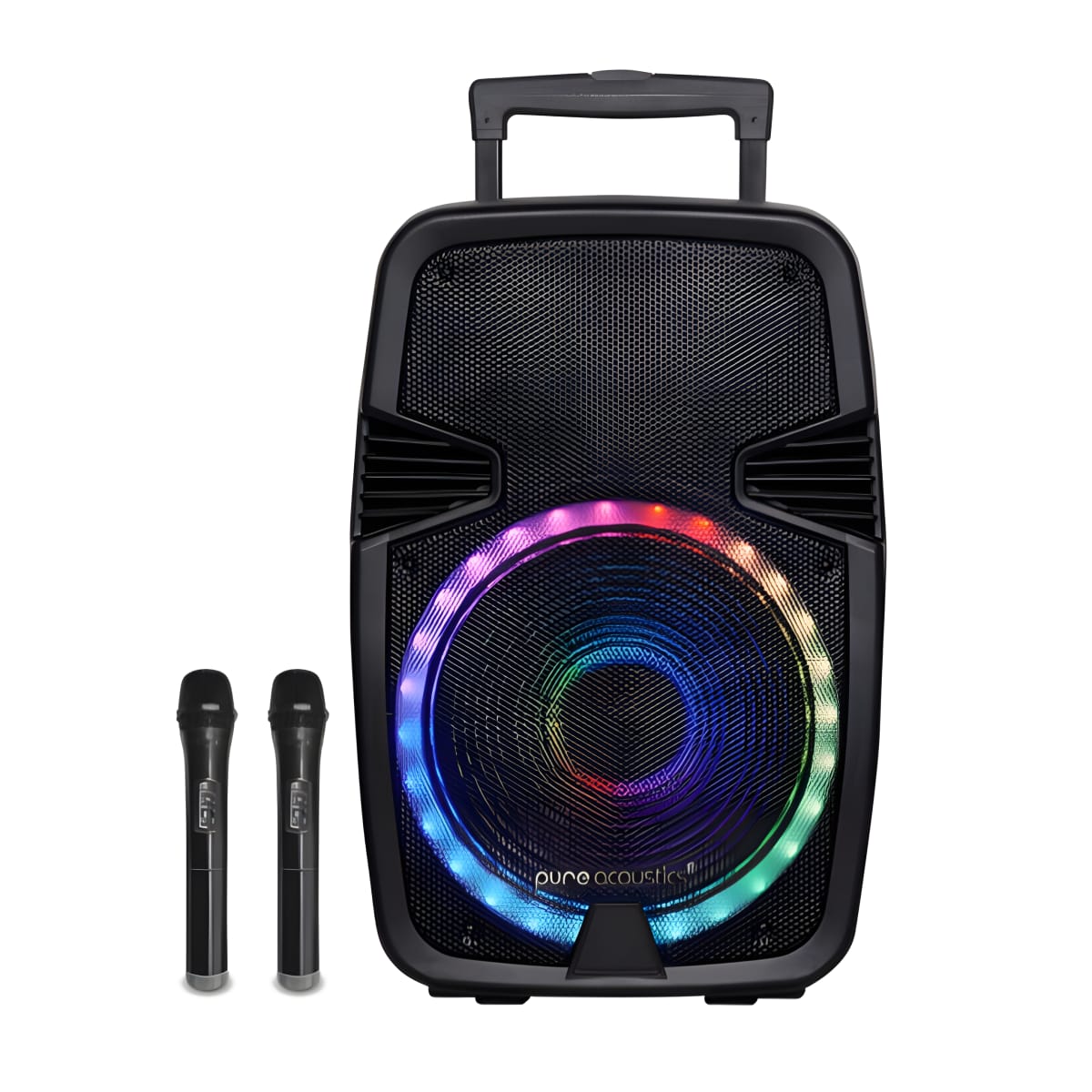 רמקול קריוקי נייד 15 אינץ' בעוצמה של 2500W. כולל 2 מיקרופונים אלחוטיים ותאורת דיסקו LED מהבהבת לאווירה מסיבתית.